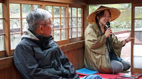 企画の段階では、彦根城域にある旧彦根藩主 井伊家の大名庭園で、鈴虫の音をBGMに呈茶のひと時を・・・ が組み入れられていたが、今年の開催は 一週間後とか。 代わりとなったのが掘割の屋形船。絵図面や古写真を基に忠実に再現されて屋形船で 季節を味わうことになった。この企画も「やや空振り」気味。 どうやら、自由になる時間さえ たっぷりあるのが、このクラス会の決めてのようだ。 お開きの寸前、ひとりがボソっとつぶやいた。「傘寿」で集まるときは、ひょっとしたら 半分になっているのかなぁ・・・と。全員 揃っているように感じるのですが。 |