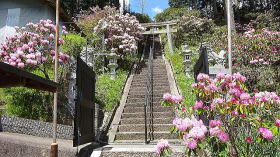 大阪湾、関空、遠くは明石海峡大橋まで見渡せる愛宕山の麓。3万本とも5万本ともいわれるツツジが。 |